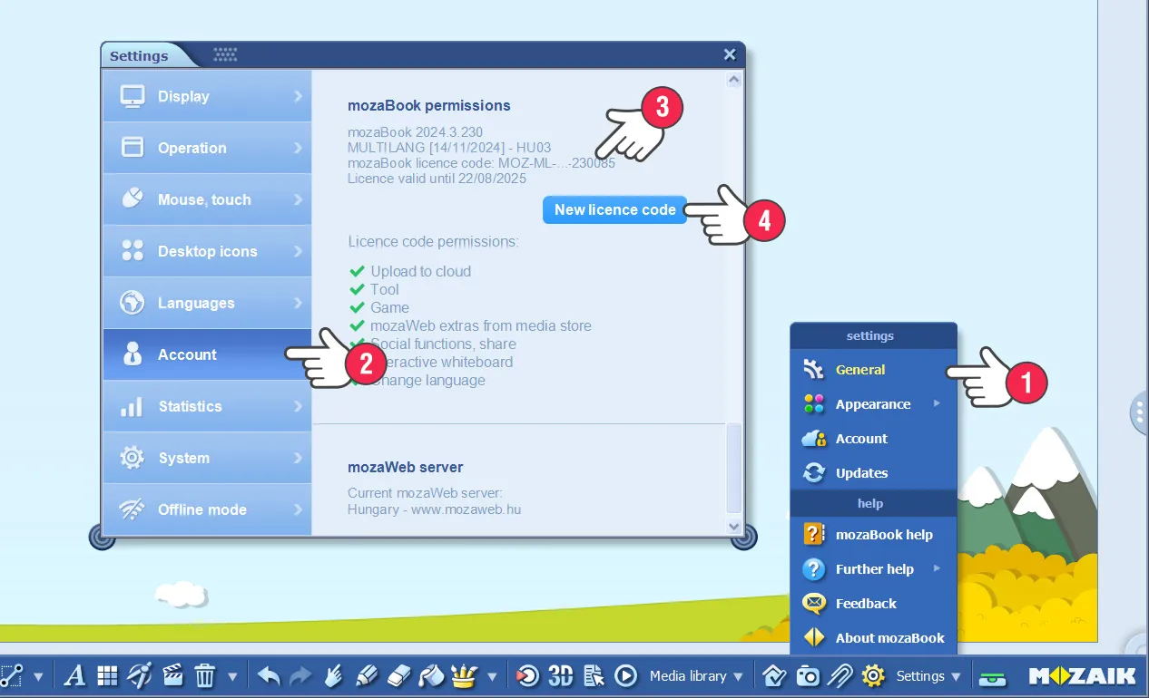 mozaBook эрх хэсэгрүү очоод одоо байгаа лицензийнхээ зургаан оронтой кодыг тэмдэглэж аваарай (3).