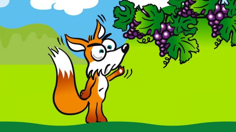 Nakon što je pojela ukusnu pečenku, lisica se zaželjela grožđa, ali ga nije mogla doseći.