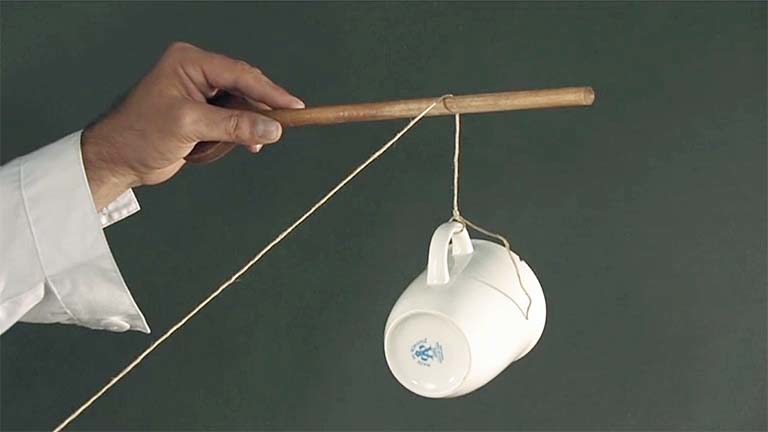 Egy teásbögrét úgy ejtünk le, hogy az nem ér földet, így nem is törik el. Hogyan lehetséges ez?