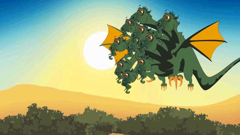 A sárkány meg akarja enni a bikát, ám az emberi összefogás és leleményesség megakadályozza ebben.