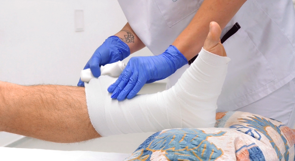 Filmünk az alsó végtag fáslizásának lépéseit mutatja be.