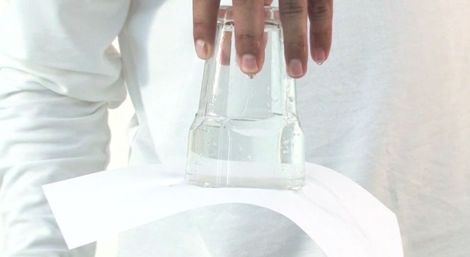 This experiment proves that air pressure acts not only downwards but upwards as well.