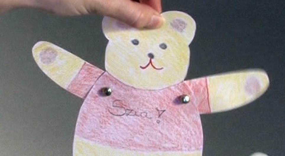 A rajzlapból kivágott mackónak mozog mindkét karja és a lába! Vajon hogyan csinálhatja?