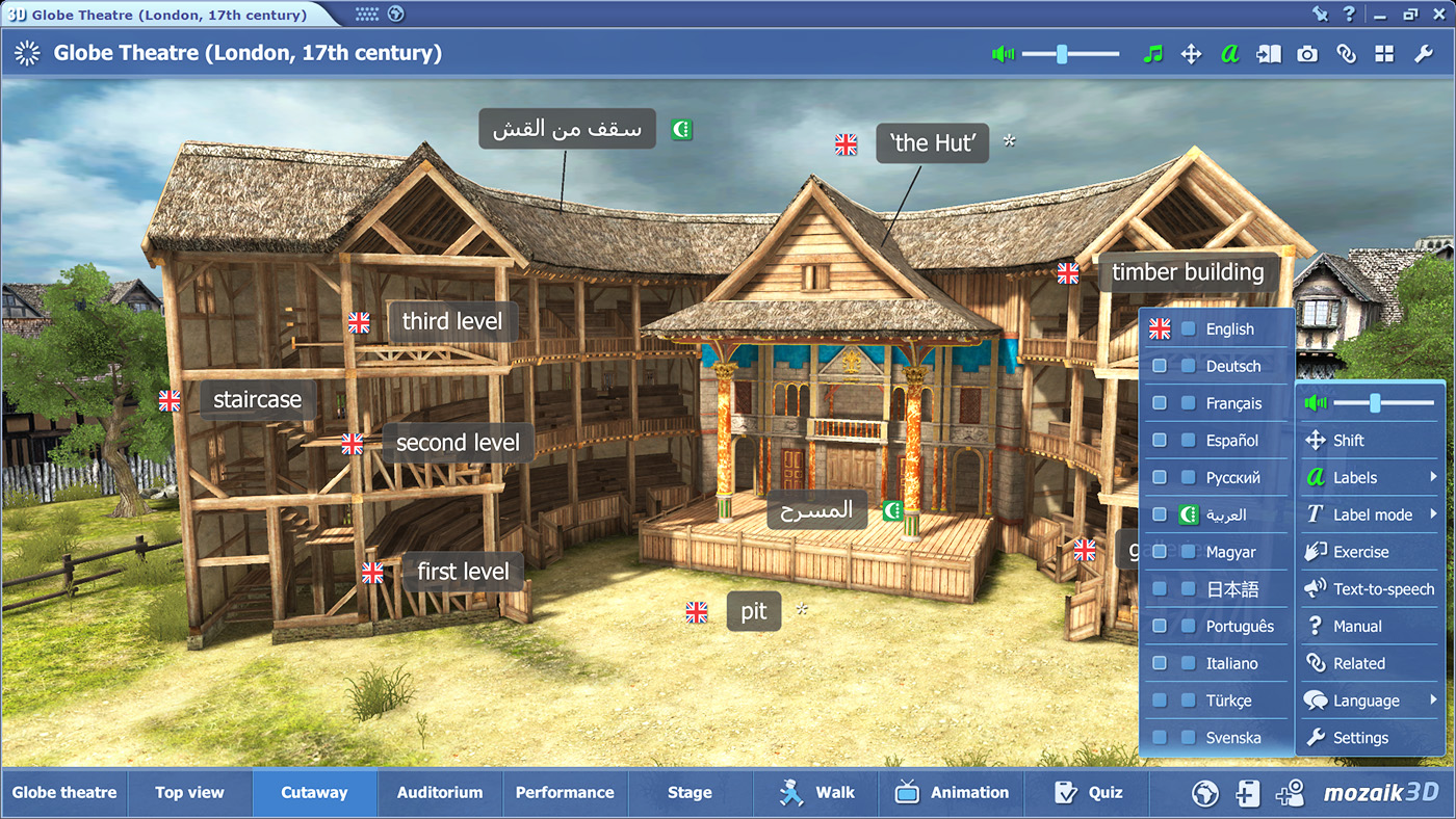 Despite this continuous and truly impressive progress of expansion of the bilingual population in Europe, teaching languages remains a very challenging task. Although language teaching techniques have definitely advanced a lot in the last two decades, it seems that no one has yet found a golden technique that would help make every single student fluent in a foreign language. Some argue that no such technique can be developed when it comes to language learning. Instead, the main task of the teacher is to get off the beaten path and show students all the opportunities that speaking a foreign language offers.mozaBook is a powerful educational tool whether it is used for bilingual classrooms or to support the study of a foreign language. mozaBook is translated into 20 languages and the MULTILANG mozaBook license allows for the interchangeable usage of these languages. It is possible to switch the operational language at any point while running the software. mozaBook also contains educational tools that were specifically designed to help students learn foreign languages. For example, our Word finder and Lan(g)game tools are a fun way for students to learn new words, while our Spelling tool is a bottomless resource of spelling exercises to use in class. If these are still not enough, our 3D models can run in two languages simultaneously and become the center of attention in a bilingual classroom.
