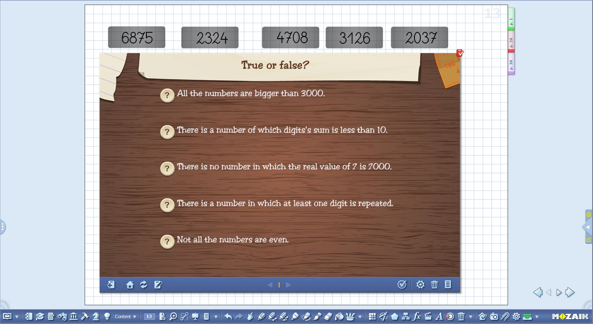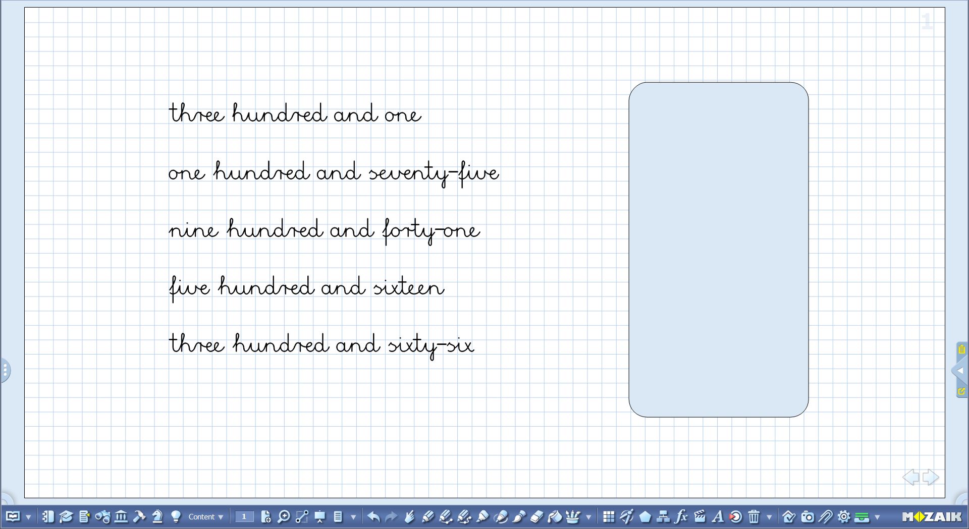 It is also possible to do the same exercise with the help of the dice, rather than memory cards, but, you might need some more experience with mozaBook for this. As any other mozaBook tool, the dice tool is editable and you can choose how many edges it should have and what numbers should appear on the edges. After rolling the dice, give students time to memorize, and then roll the dice again. Keep in mind that with this alternative, the same number might come up more than once.