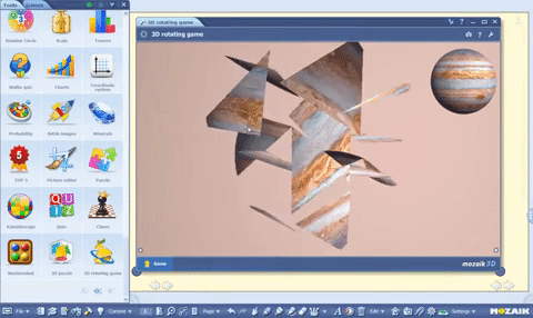 Rotating game is another skill development tool in mozaBook where the main goal is to assemble fragments of broken 3D models by rotating them.