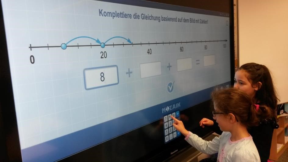Alle Klassenlehrer, die eine Tafel in ihrem Klassenraum nutzen konnten, bekamen von Mozaik einen Zugang, ebenso wie alle Fachkollegen in den betroffenen Klassen. Alle Kollegen, die nicht wie wir vom Medienteam das Glück hatten eine Schulung in Ungarn zu besuchen, bekamen eine Einführung in die Grundfunktionen der Software als Starthilfe. Inzwischen steht das Medienteam als Ansprechpartner für Fragen zu komplexeren Funktionen zur Verfügung. Viele Kollegen begannen direkt in Eigeninitiative das Mozabook in ihren Unterrichtsalltag zu integrieren. Die intuitive und häufig selbsterklärende Bedienbarkeit erleichterte allen Lehrern den Einstieg. Auch die zahlreichen Videotutorials boten dabei wichtige Hilfe. Am wichtigsten war jedoch, dass alle Lehrer schon nach wenigen Unterrichtsstunden feststellen konnten, wie motiviert, aufmerksam und begeistert die Kinder am Unterricht teilnahmen. Jeder Schüler wollte an der Tafel mitarbeiten. Dabei fiel den Kindern die Nutzung der Schreibwerkzeuge und anderer Tools von Beginn an sehr leicht.