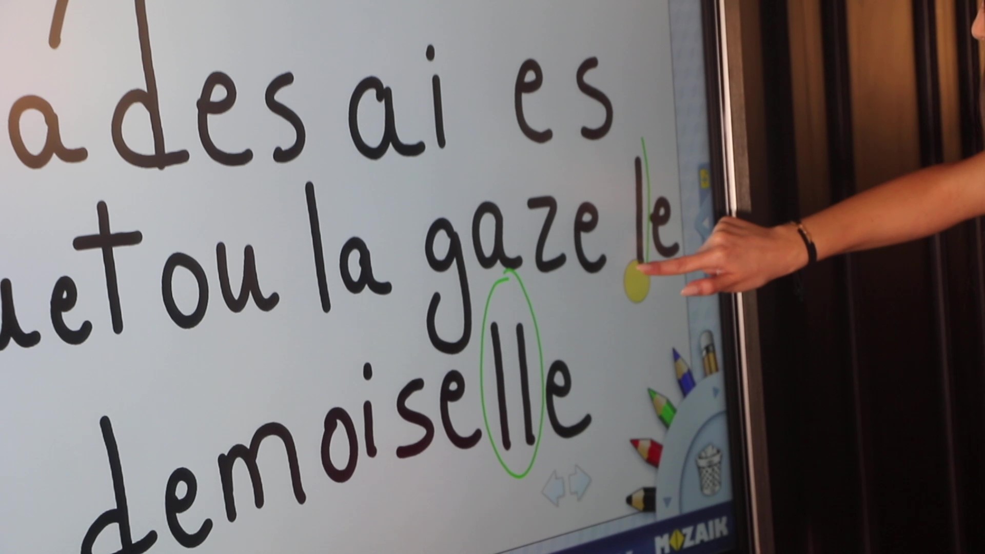 While Mr. Kilo (Physics) is enthusiastically explaining that creating electrical circuits and setting various parameters during the lesson with the help of the Elektro Kit has never been easier, one of the Chemistry teachers, Ms. Turkiye noted that the interactive 3D scene collection makes a real difference as it helps students thoroughly understand topics like atoms or atomic bonds.Although mozaBook provides a wide range of possibilities and content for higher grades, Ms. Taoum emphasized the importance and perks of having the interactive board and colorful pencil set on primary and kindergarten levels: