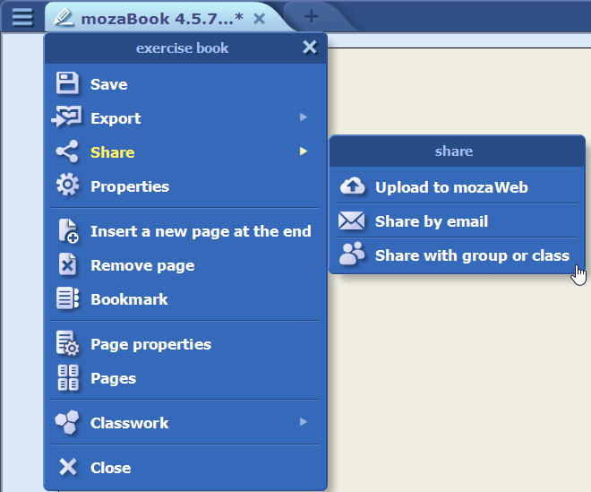 • In the share menu, sharing effortlessly and immediately with a group or class is now available for exercise books.