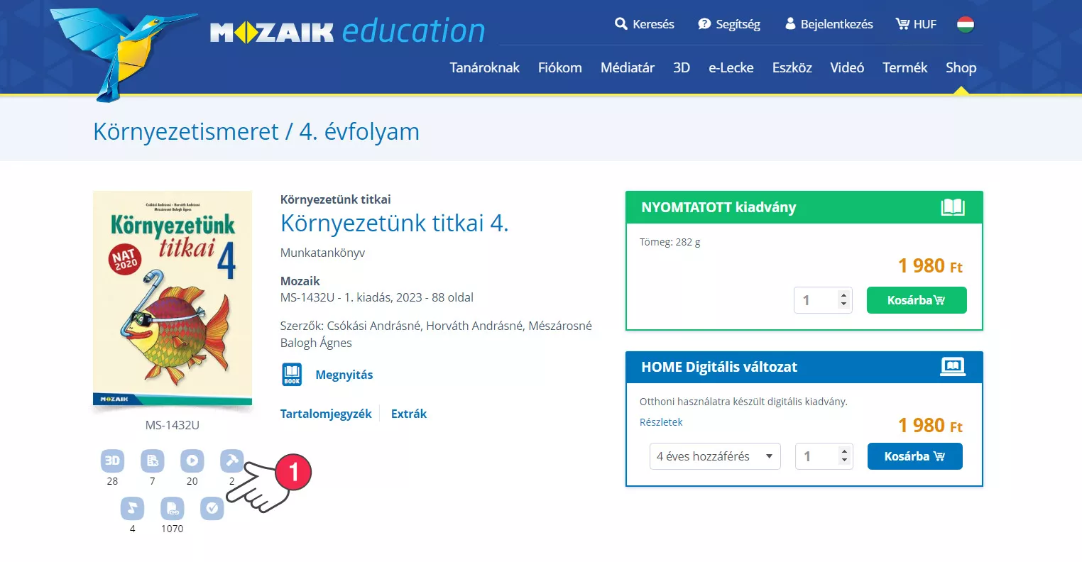 A munkafüzetek többségének digitális változatában a feladatok megoldásai bekapcsolhatók. A kiadványok adatlapján egy pipa ikon (1) jelzi, hogy a kiadvány tartalmaz-e ilyen bekapcsolható megoldásréteget.